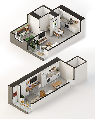 Renders de 360º para generar una inmersión virtual que permita explorar los espacios antes de ser construidos.